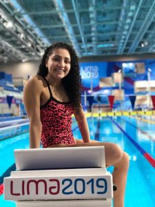 La nadadora carlospacense compitió en las pruebas de 100 metros de espalda y 100 metros mariposa, en las cuales tuvo un gran desempeño, superando su mejor marca personal.