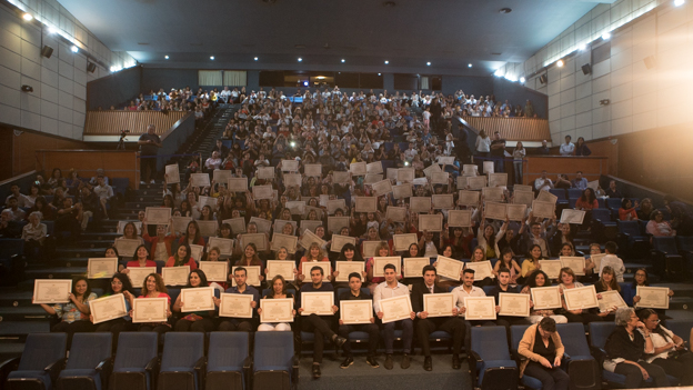 De la Facultad de Educación Física egresaron 13 Técnicos/as Universitarios en Actividad Física; mientras que en el acto que se realizó a las 19, egresaron 128 Profesores/as de Educación Física