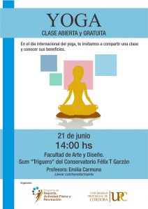 Les recordamos que quienes deseen participar de la clase, deberán traer su colchoneta o manta.