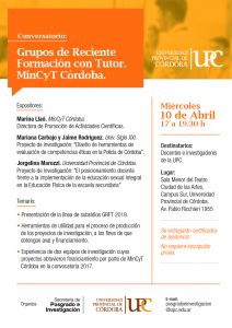 - Experiencia de dos equipos de investigación cuyos proyectos obtuvieron financiamiento por parte de MinCyT Córdoba en la convocatoria 2017.