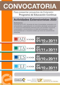 En esta oportunidad, la presentación de capacitaciones para implementar en el año 2020 se deberá realizar ante las áreas de Extensión de cada una de las Facultades de acuerdo a las fechas establecidas por cada una.