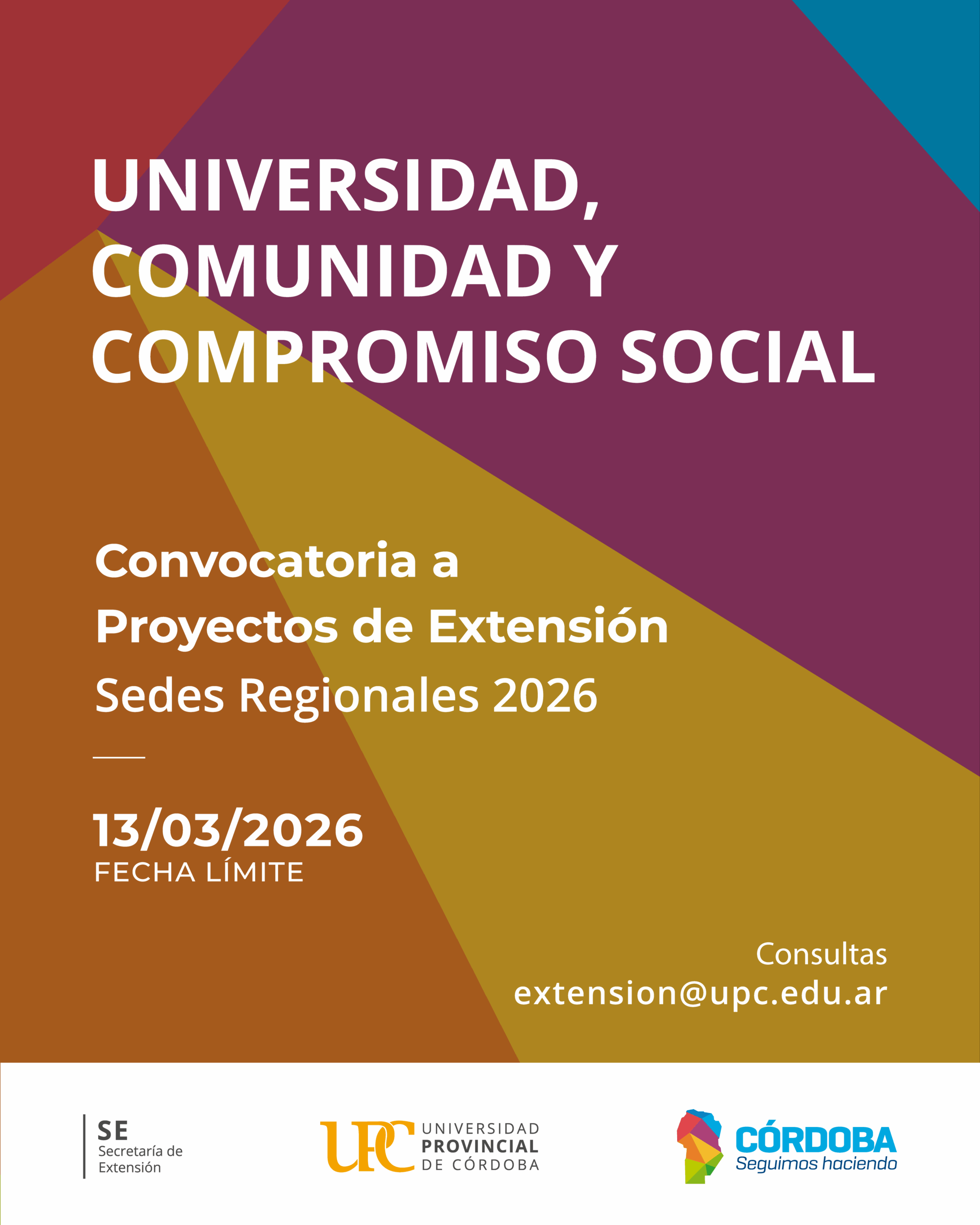 La Universidad Provincial de Córdoba (UPC), a través de su Secretaría de Extensión, anuncia la apertura de la Convocatoria 2026 de Proyectos de Extensión de las Sedes Regionales, en el marco del programa “Universidad, comunidad y compromiso social”.