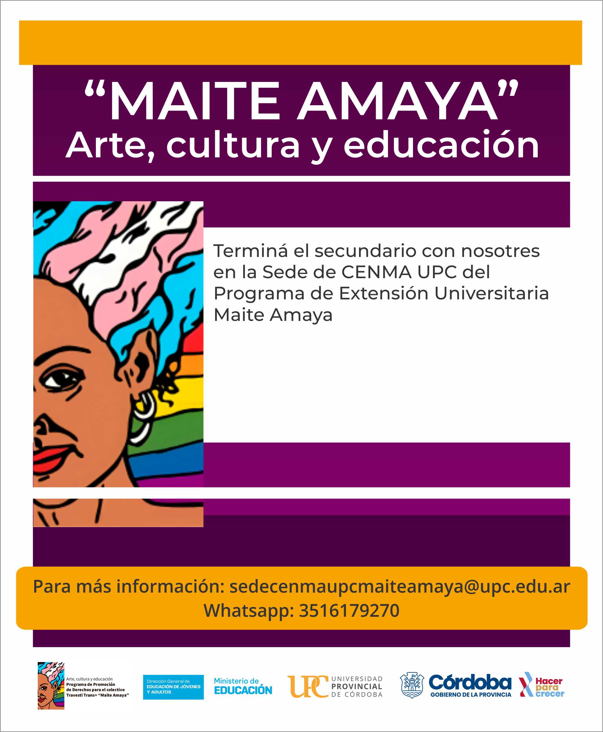 La Sede del CENMA UPC del Programa de Extensión “Maite Amaya” fue inaugurada en 2023, en el marco de las efemérides del 17 de mayo, “Día internacional de lucha contra la discriminación por orientación sexual e identidad de género”, y “Día Provincial por la Igualdad y la No Discriminación por Orientación sexual, identidad y expresión de género”.