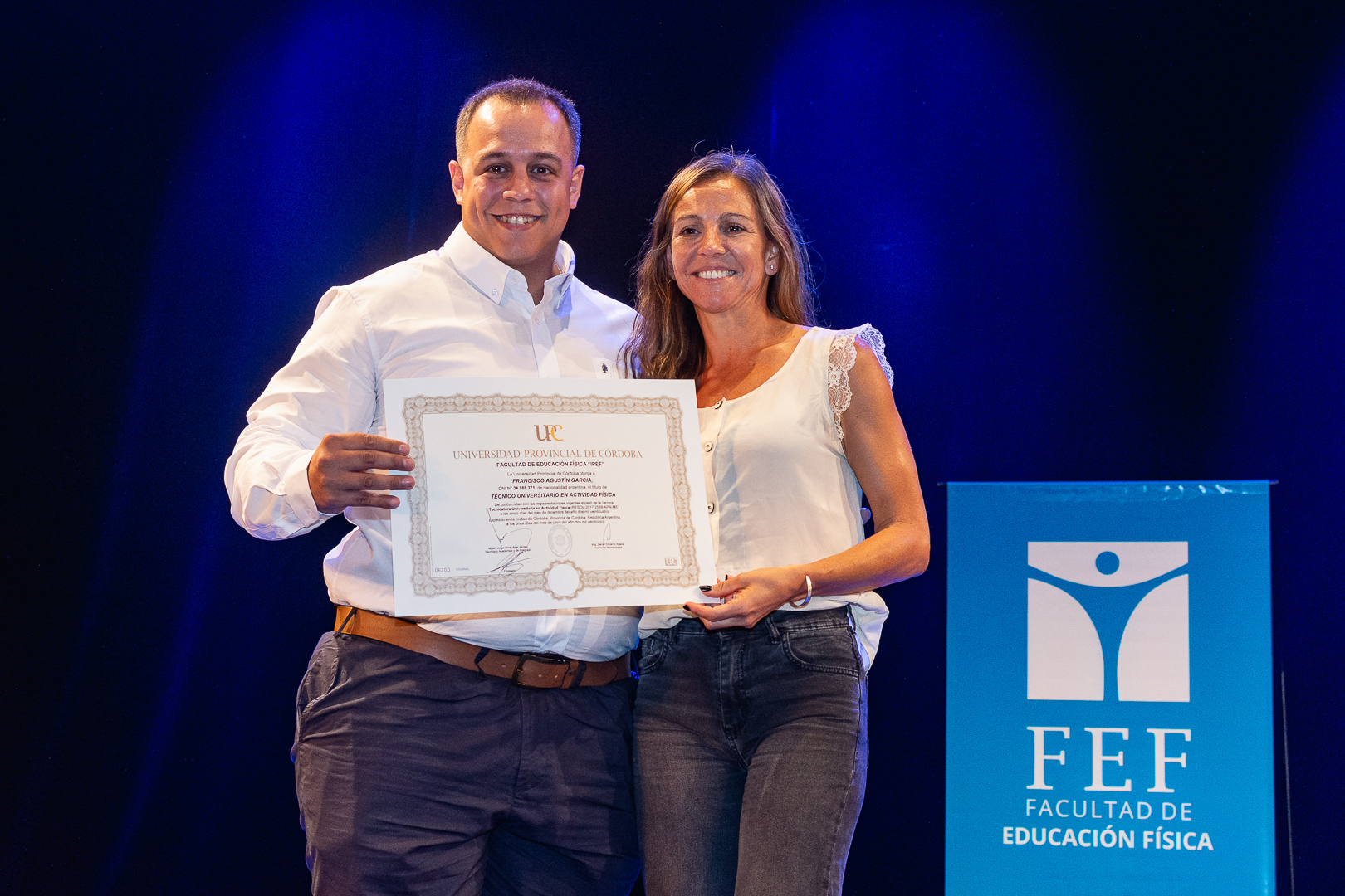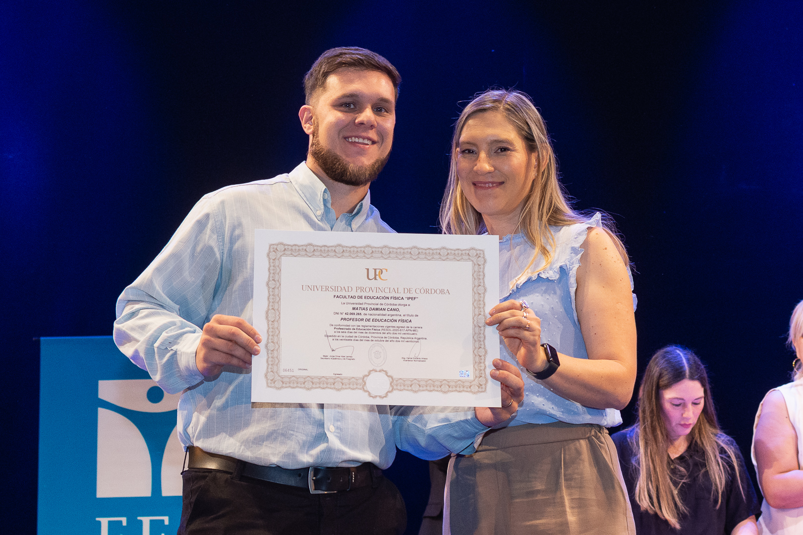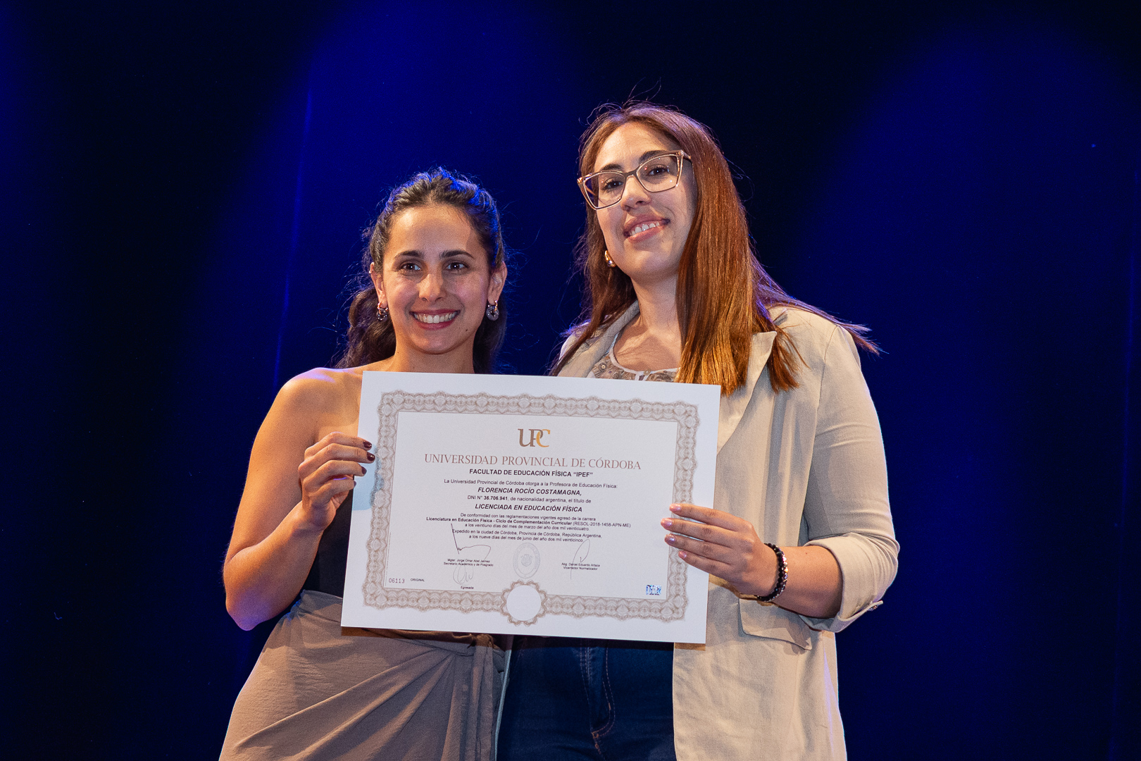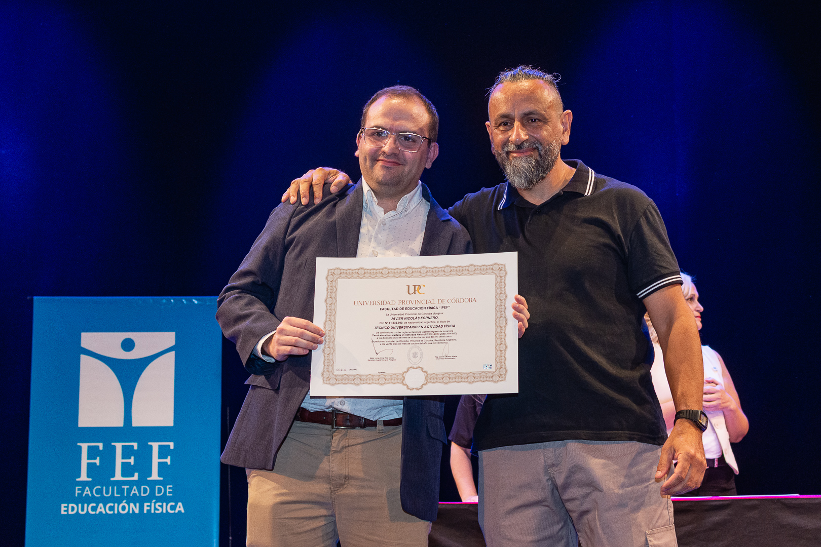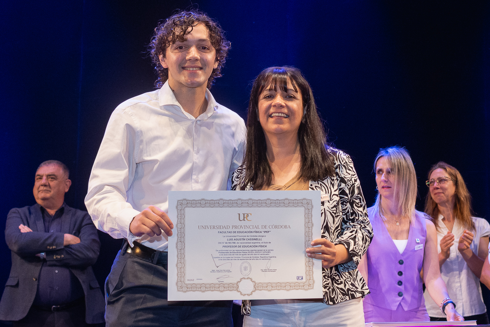 La ceremonia contó con la presencia del secretario de Académica y Posgrado, Jorge Jaimez, además de autoridades, docentes y no docentes de la FEF, representantes del Centro de Estudiantes, miembros de la Unión de Educadores de la Provincia de Córdoba (UEPC), además de familiares que acompañaron con orgullo este importante hito académico.