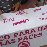 El símbolo consiste en un banco —para al menos dos personas— intervenido con la bandera de la paz, concebido como un espacio tangible para el encuentro y la reconciliación, un lugar donde sea posible “hacer las paces”.