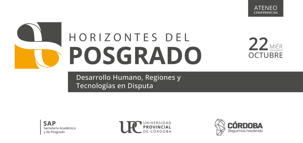Bajo el título Horizontes del Posgrado: Desarrollo Humano, Regiones y Tecnologías en Disputa, la Universidad Provincial de Córdoba (UPC) convoca a cuatro destacados especialistas en ciencias sociales y humanidades para brindar conferencias abiertas al público.