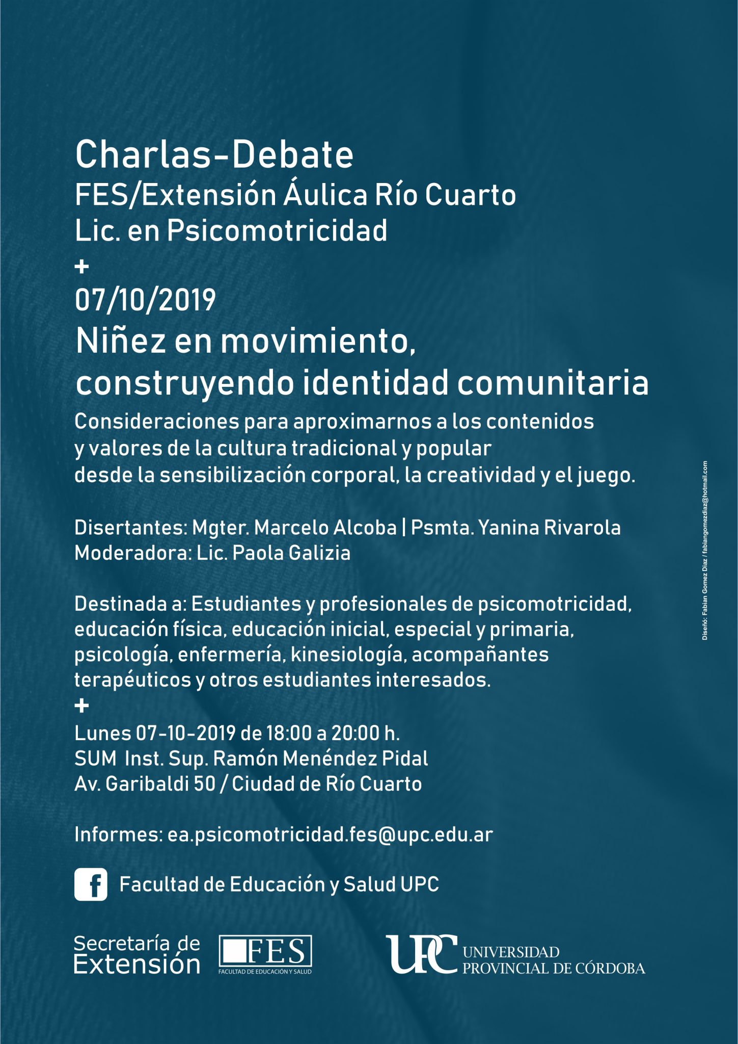 La Extensión Áulica Río Cuarto de la Licenciatura en Psicomotricidad y la Secretaría de Extensión de la FES invitan a la serie de Charlas-Debate 2019.