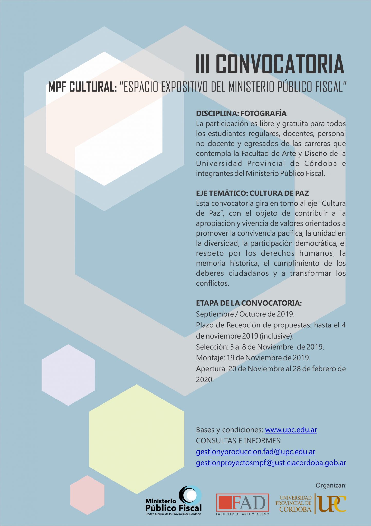La Facultad de Arte y Diseño de la Universidad Provincial de Córdoba invita a participar de la tercera Convocatoria del MPF Cultural, en producciones fotográficas.