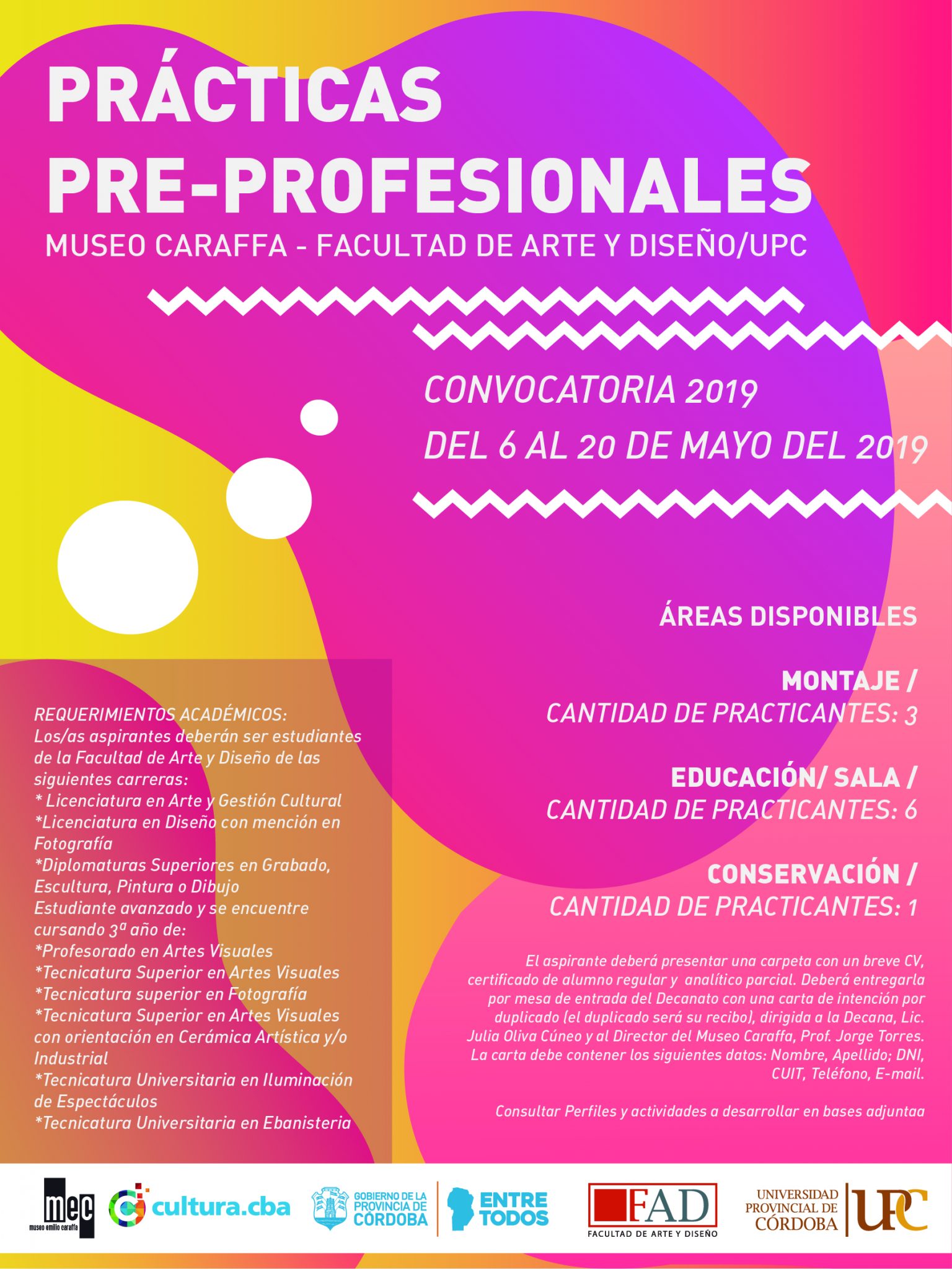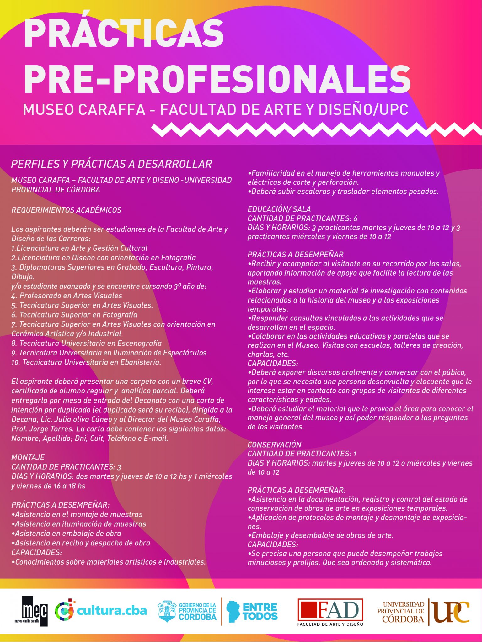 La Facultad de Arte y Diseño de la Universidad Provincial de Córdoba invita a participar de la Convocatoria para Prácticas Pre-profesionalizantes en el Museo Caraffa – FAD.