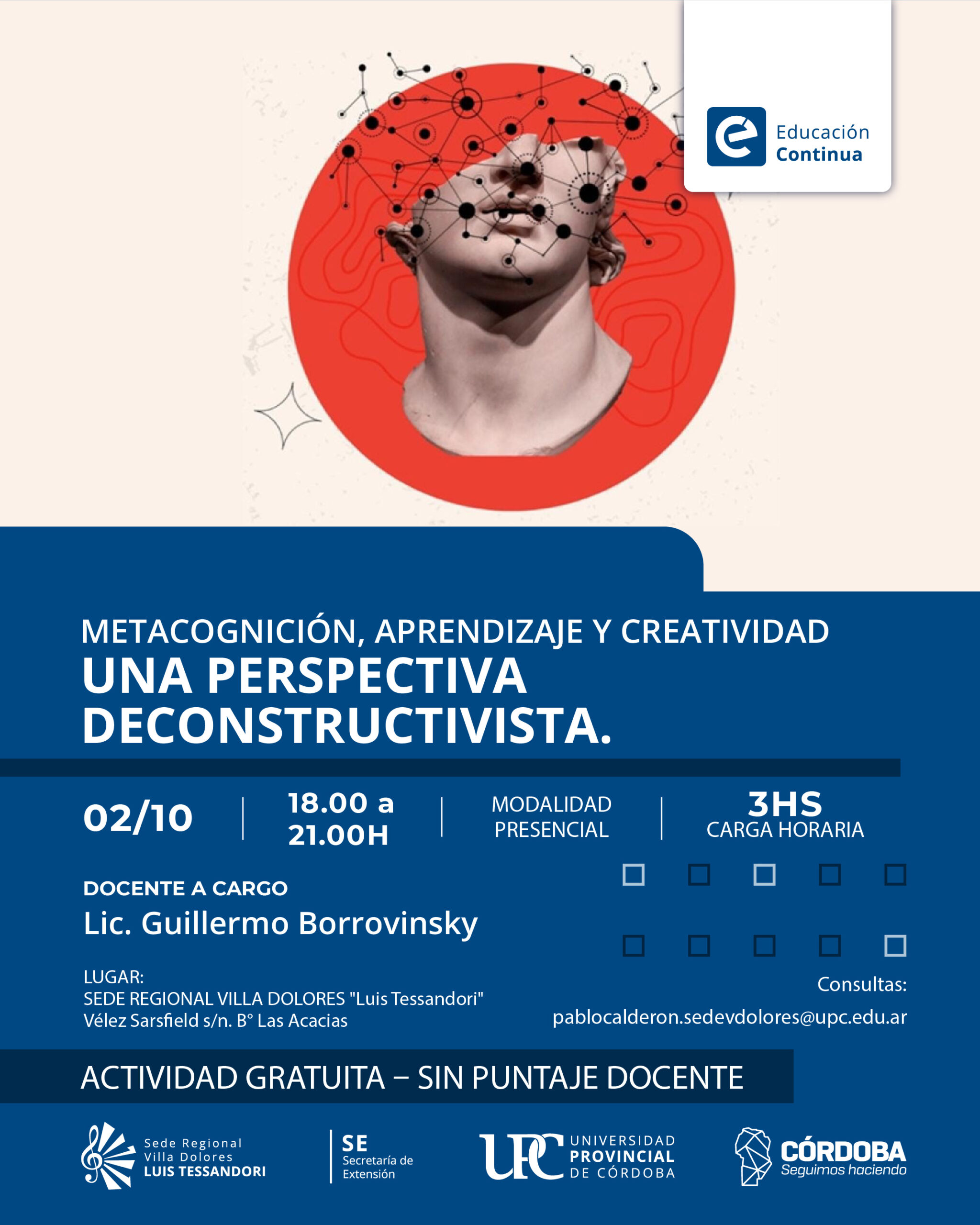 La Universidad Provincial de Córdoba invita a participar del Curso de Educación Continua “Metacognición, aprendizaje y creatividad”.