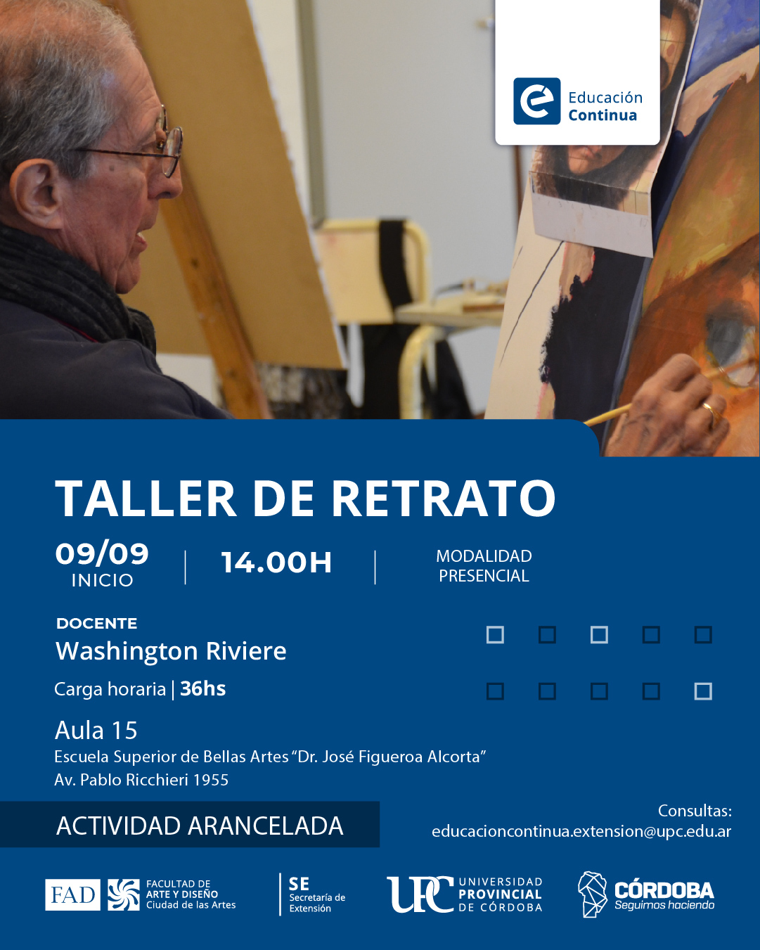 La Universidad Provincial invita a participar del Curso de Educación Continua “Taller de retrato”, dictado por el artista Washington Riviere.
