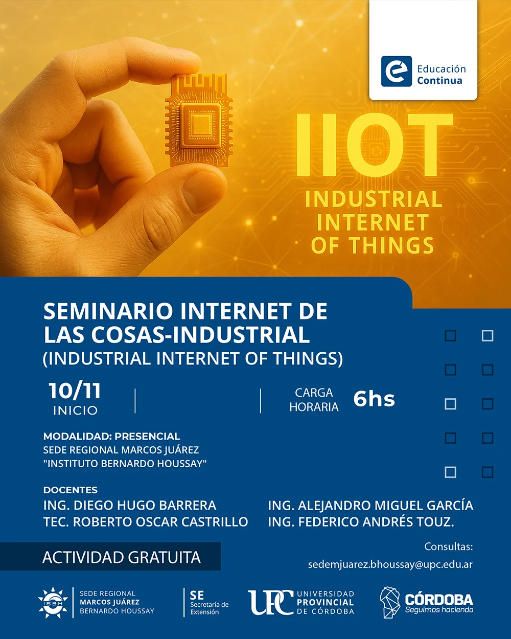 Esta formación se dictará de manera presencial en la UPC Sede Regional Marcos Juárez Bernardo Houssay.