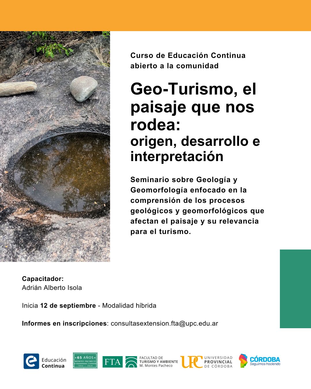 Seminario sobre Geología y Geomorfología enfocado en la comprensión de los procesos geológicos y geomorfológicos que afectan el paisaje y su relevancia para el turismo.