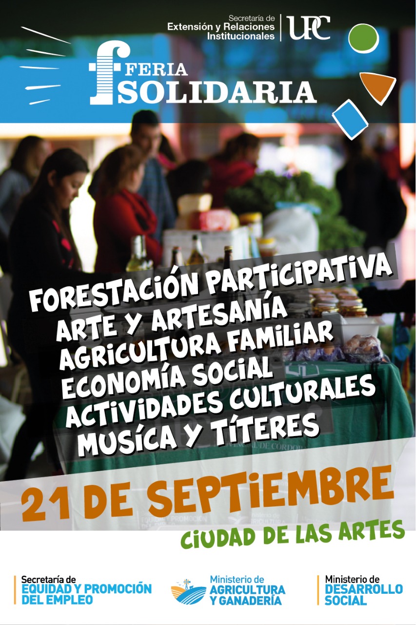 La Feria Solidaria es organizada por la Secretaría de Extensión y Relaciones Institucionales de la UPC en el marco del Programa de Vinculación territorial y comunitaria junto a la Secretaría de Equidad y Promoción de Empleo y la Dirección de Producción Agropecuaria Familiar.