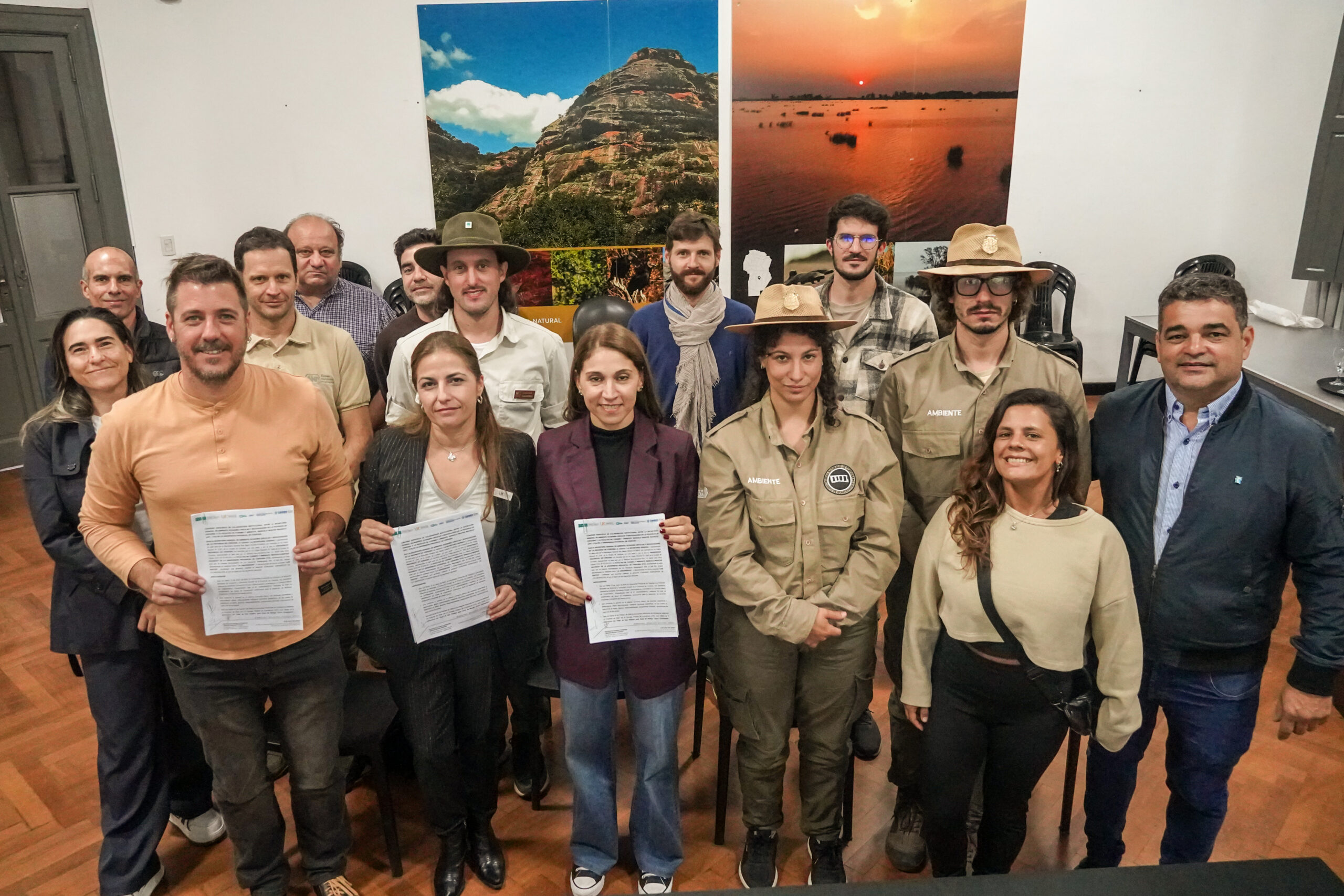 Acompañaron la rúbrica, por parte de la facultad, el secretario de Gestión Académica e Innovación, Horacio Vega; la secretaria de Extensión y Vinculación Territorial, Silva Ruffini; el Secretario de Investigación y Desarrollo, Nicolás Rocamundi; el Coordinador de la Tecnicatura en Guardaparque, Luciano Planté; Franco Menna, Coordinador del Proyecto Bosque Nativo; y el Coordinador del Equipo Técnico de Planeamiento, Juan Pablo Mesa.