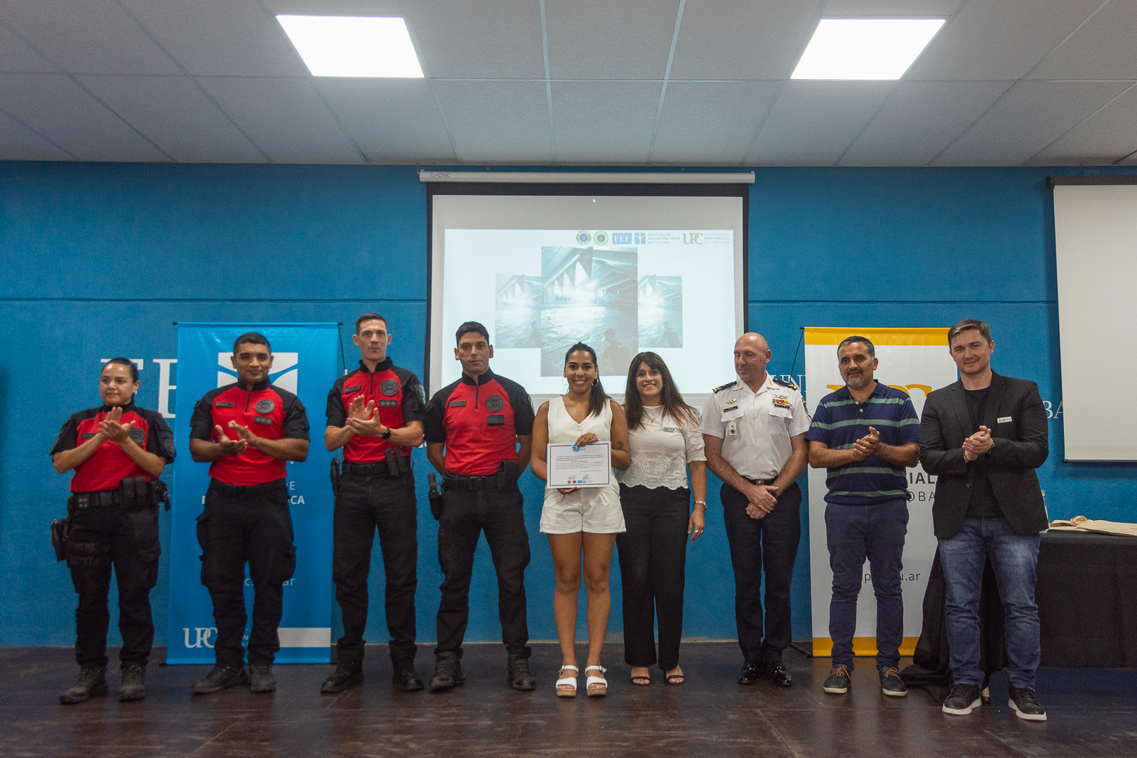 El encuentro tuvo lugar en el Auditorio de la Facultad de Educación Física (FEF), donde trece estudiantes recibieron su certificación tras haber aprobado los contenidos teóricos y prácticos de una formación orientada al cuidado de la vida, la prevención y la intervención en contextos acuáticos.