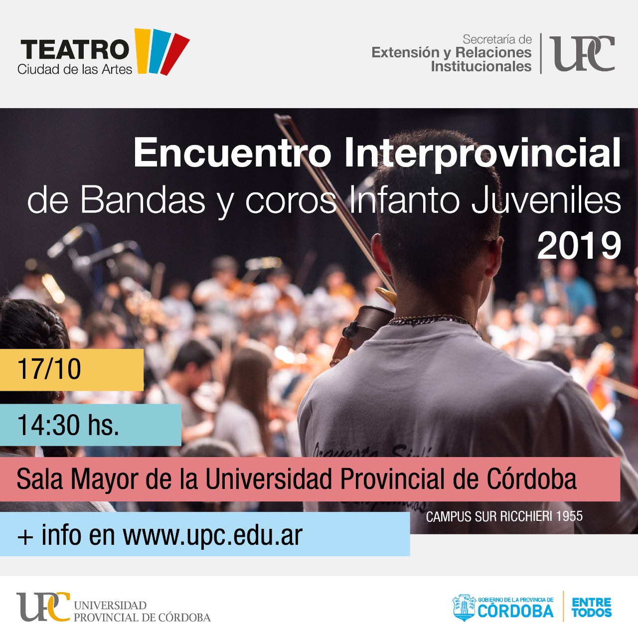 La Secretaría de Extensión y Relaciones Institucionales de la Universidad Provincial de Córdoba invita a participar del Encuentro Interprovincial de Bandas y Coros Infanto Juveniles 2019.