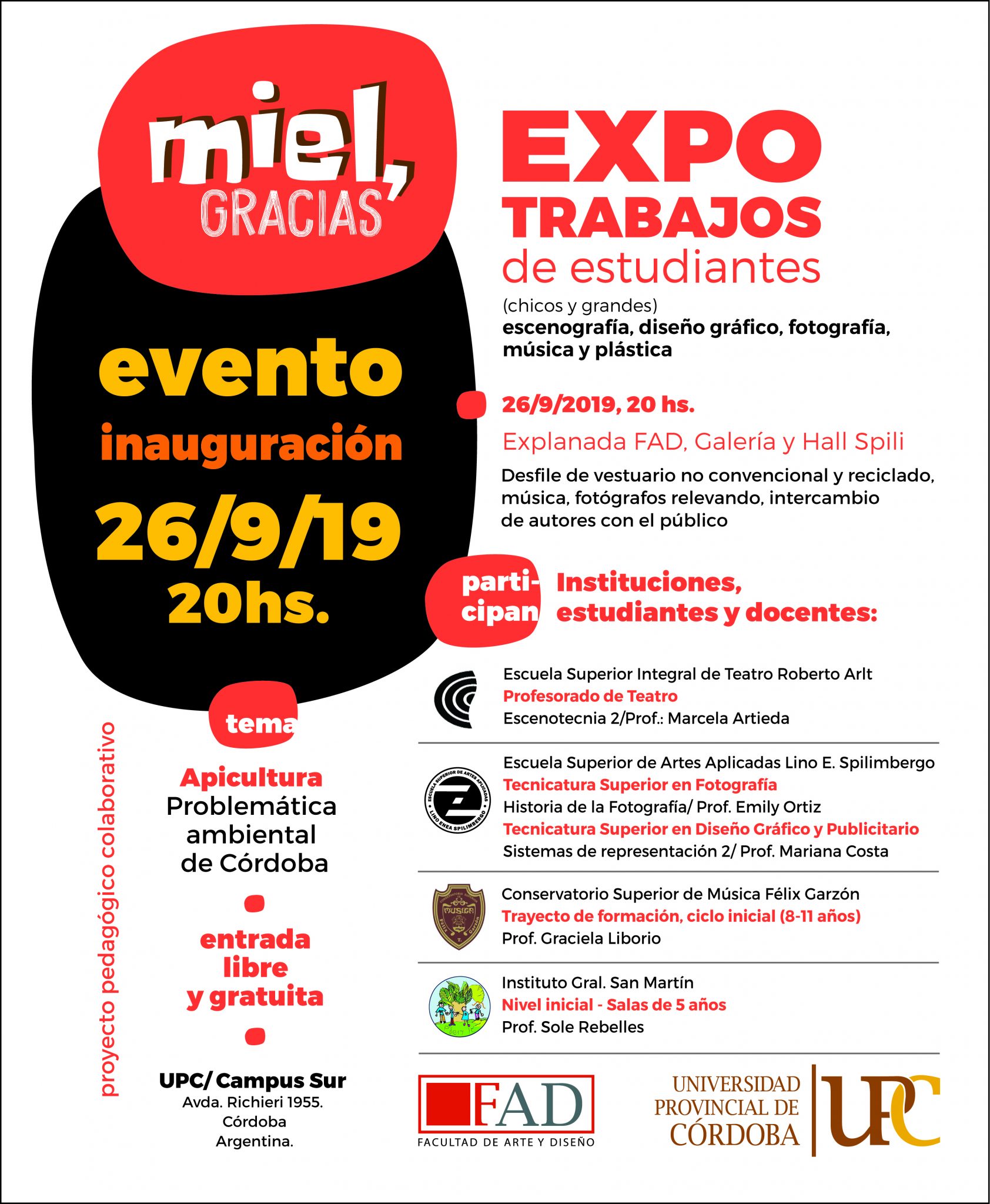 El área de Gestión y Producción Artística de la Facultad de Arte y Diseño de la Universidad Provincial de Córdoba invita a participar de la presentación del  Proyecto Pedagógico Colaborativo/PPC:  “Miel, gracias”.