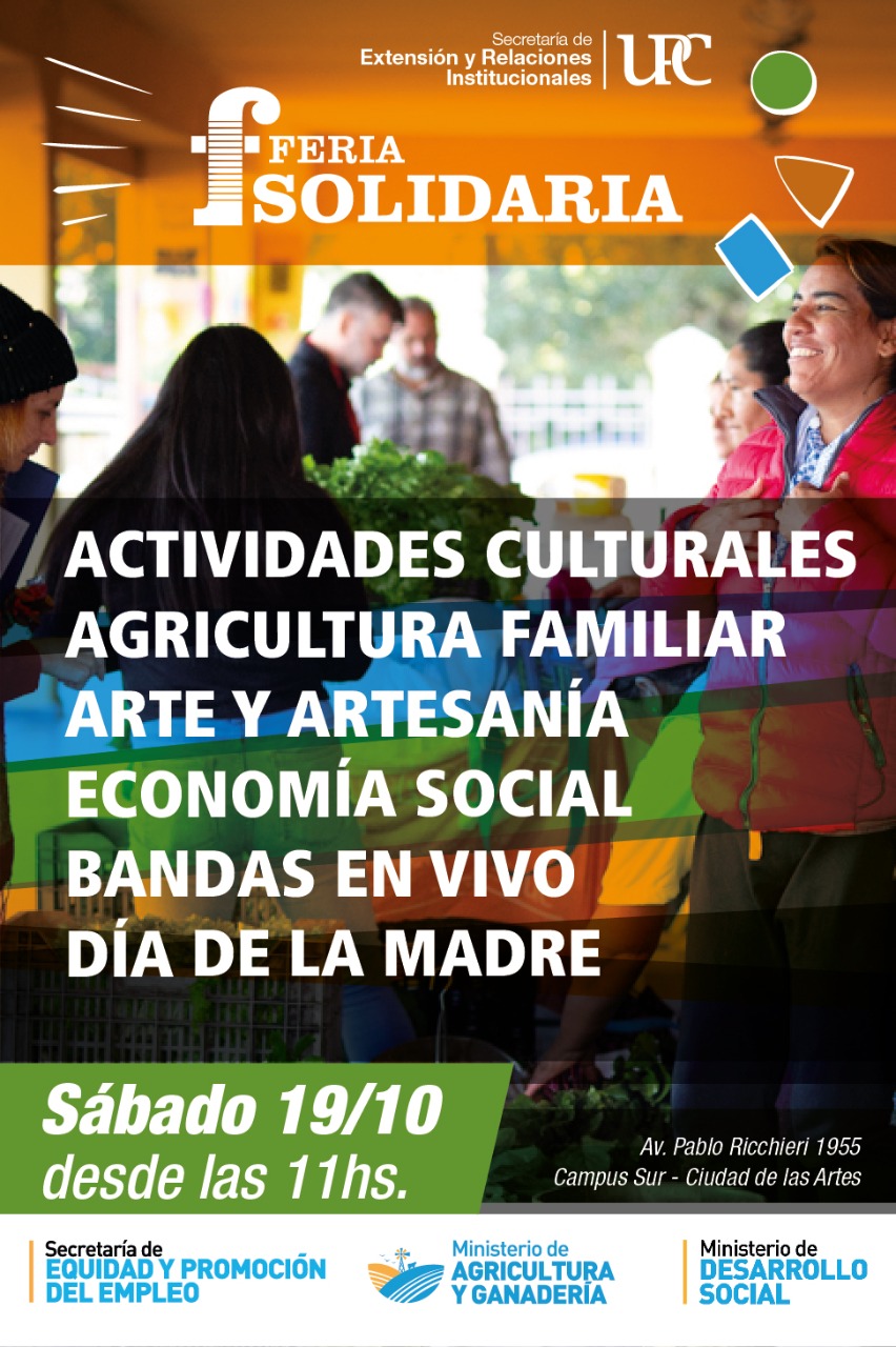 La Feria Solidaria es organizada por la Secretaría de Extensión y Relaciones Institucionales de la UPC en el marco del programa de vinculación territorial junto a la Secretaría de Equidad y Promoción de Empleo, la Dirección de Producción Agropecuaria Familiar y con el apoyo del Ministerio de Desarrollo Social.