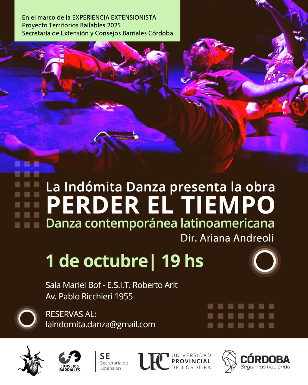 En el marco de la experiencia extensionista Territorios Bailables 2025, el elenco La Indómita Danza presentará “perder el tiempo”, una obra para todo público que cruza el juego y el humor corporal, evocando paisajes latinoamericanos en estado de danza.