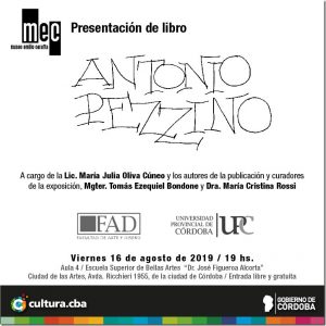 La Facultad de Arte y Diseño de la Universidad Provincial de Córdoba invita a la presentación del libro Antonio Pezzino, en conmemoración al reconocido artista plástico argentino uruguayo.