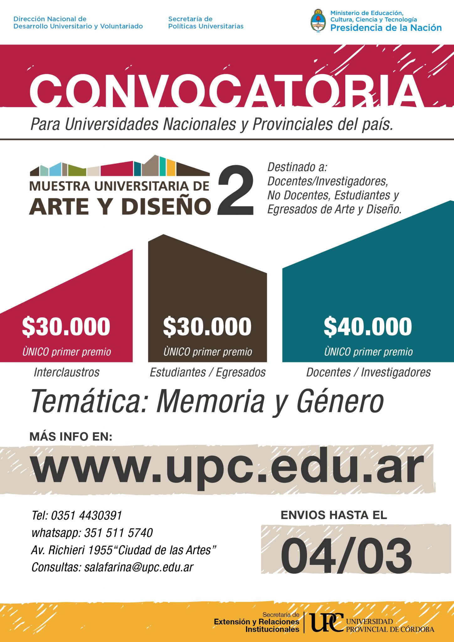 - Recepción obras:del miércoles 13 al viernes 15 de marzo inclusive en el horario, 12 a 18.