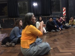La propuesta consiste en abordar juegos y técnicas del teatro del oprimido como una herramienta para la composición escénica. Simone Requiao se inspira en los dispositivos del Teatro del Oprimido desarrollado por Augusto Boal y Bárbara Santos (Brasil).