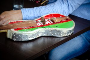 Durante la visita se dialogó sobre la fabricación y perfeccionamiento de instrumentos reciclados y de la experiencia del violinista William Wilson Lopez como lutier de instrumentos reciclados en la Orquesta de Cateura.