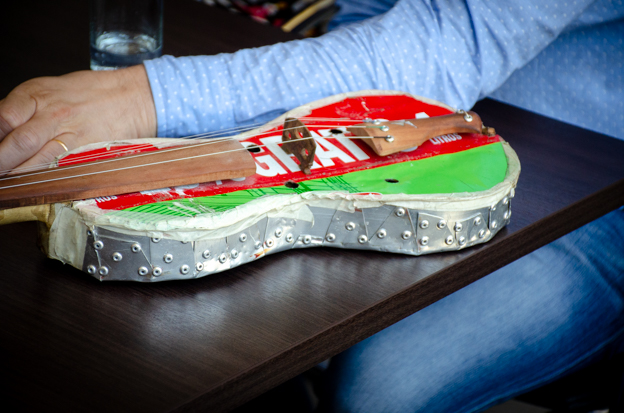 Durante la visita se dialogó sobre la fabricación y perfeccionamiento de instrumentos reciclados y de la experiencia del violinista William Wilson Lopez como lutier de instrumentos reciclados en la Orquesta de Cateura.